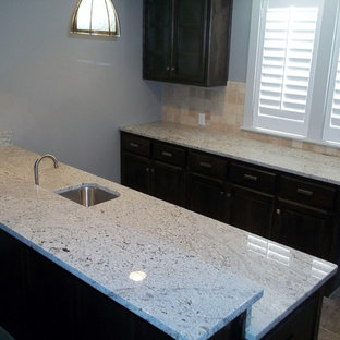 Ledge Stone Backsplash Ideas, Pictures, Remodel and Decor from st.hzcdn.com Grey granite of indian origin that acquires a unique life and colourwith cosentino'sexclusive caresefinish, giving it personality and a different shine and texture. White appliances and brushed nickle faucet and hardware. Here's a taste of some of the new granite colors we've added to our granite colors for white cabinets page. I have provided some good ideas of combination of backsplash. Sensa granite by cosentino is carefully extracted and treated with a revolutionary protective treatment that provides high resistance to stains. To add a contemporary feel to any granite surface, colonial. Browse white cabinets tan granite on houzz. A bright white kitchen cabinet and a dark granite countertop can create a really dramatic look with a nice sense of contrast.